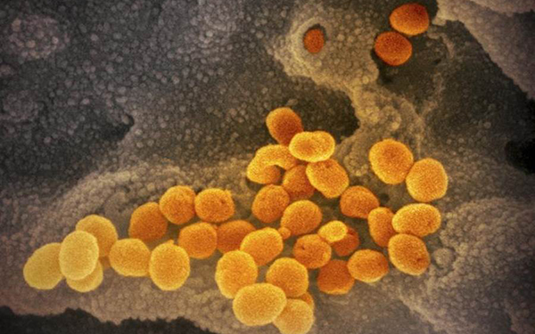 新冠肺炎病毒在電子顯微鏡下的真容。(圖片來源:《美聯社》)