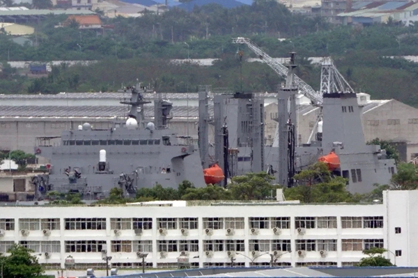 臺軍磐石艦日前靠泊在左營軍港內等待檢疫消毒。(圖片來源:臺灣《聯合報》)