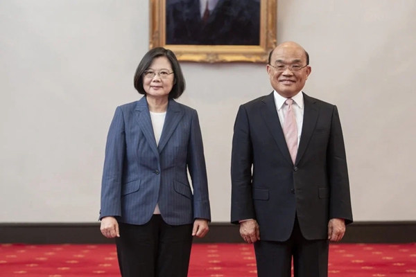 蔡英文(左)昨天宣布蘇貞昌(右)續任臺當局“行政院長”。(圖片取自臺媒)