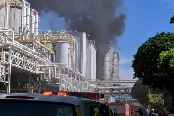 高雄市臺塑林園廠突發爆炸冒濃煙。(圖片來源:臺灣“聯合新聞網”)