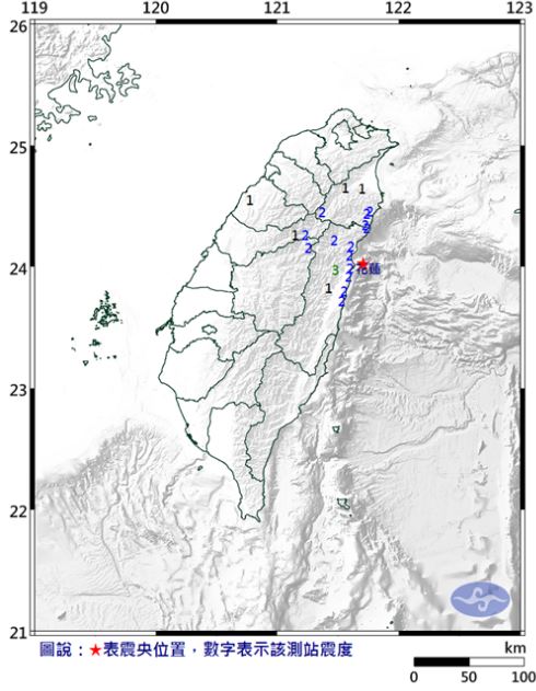 臺(tái)灣花蓮縣近海發(fā)生4.4級(jí)地震。(圖片取自臺(tái)媒)
