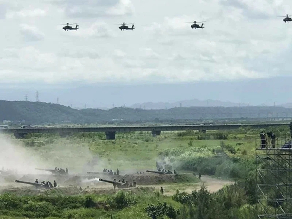 臺軍第五作戰區2日采“實兵、實彈、全裝”模式進行實彈射擊,按照所謂的“戰力防護、濱海決勝、灘岸殲敵”作戰方針,以聯合兵種營為主體,整合作戰區內三軍兵、火力,阻擋解放軍進攻。現場臺空軍F-16戰機與臺陸軍雷霆火箭,各型自行火炮及攻擊直升機都同步轟炸,臺海軍也派出軍艦操演。