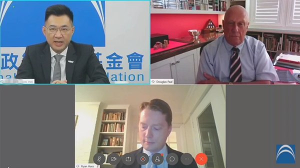 國民黨智庫26日舉辦線上論壇,美國國家安全委員會前中國事務主任何瑞恩(中下)直言,如果兩岸發生沖突,多數美國民眾對派兵參戰持保留態度。(圖片取自臺媒)