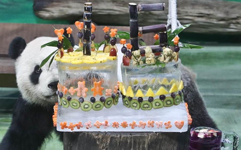 臺北市立動物園為赴臺大熊貓“團團”準備的生日冰蛋糕。(圖片來自于臺媒)