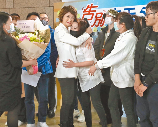 中天新聞主播與同仁相擁而泣。(圖片來源:臺灣“中時新聞網”)