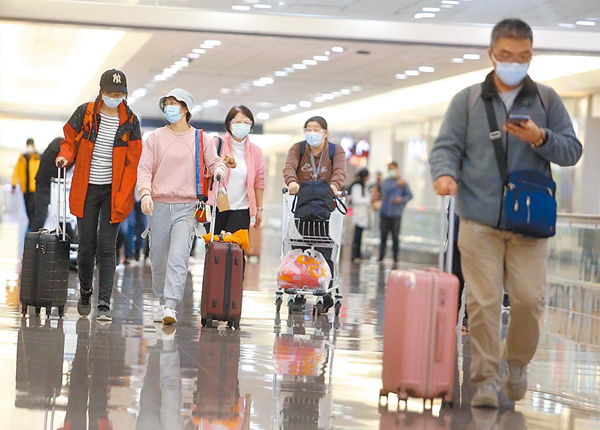 圖為桃園機場入境管制區內,一群剛下機的旅客正準備通關入境。(圖片來源:臺灣“中時新聞網”)