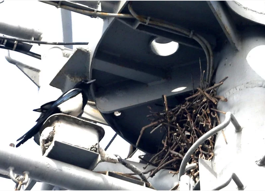 然而,參加操演的海軍大湖艦卻被發(fā)現(xiàn)有一對(duì)喜鵲在桅桿上筑巢,“鳥(niǎo)新聞”成為意外插曲,令人聯(lián)想是否這艘軍艦是靠港太久沒(méi)有出港,連鳥(niǎo)類(lèi)都來(lái)筑巢?臺(tái)海軍司令部27日表示,大湖艦約于一個(gè)月前納編操演,因此在左營(yíng)軍港泊港配合演練,分析當(dāng)時(shí)即成為喜鵲筑巢對(duì)象,期間官兵雖曾發(fā)現(xiàn),但因巢中已有鳥(niǎo)蛋等小生命,基于愛(ài)護(hù)動(dòng)物不忍移動(dòng),會(huì)等到成鳥(niǎo)孵出雛鳥(niǎo)離巢后,再清除鳥(niǎo)巢。