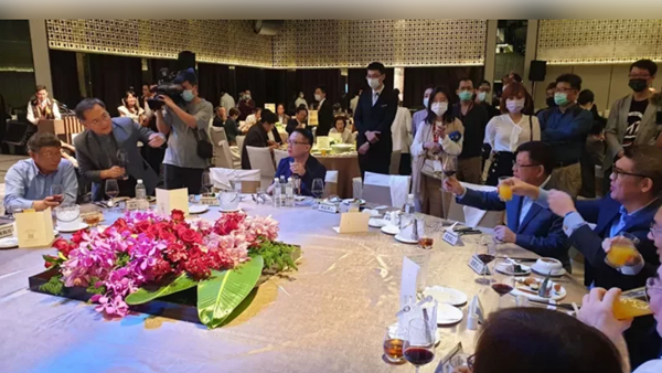 考慮競選中國國民黨黨主席的連勝文與江啟臣,似沒受到改選氣氛影響,兩人現場互動良好,一旁看連勝文、江啟臣互動的柯文哲,主動舉杯向連勝文及江啟臣敬酒。