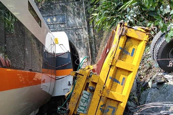 臺鐵列車被工程車砸出軌卡隧道 4人無生命跡象。(圖片來自臺灣“中時新聞網”)
