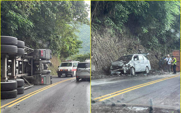 臺灣蘇花公路15日下午發(fā)生砂石車與9人座橋車相撞車禍。