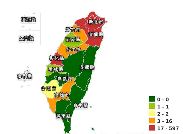 臺灣“雙北”本地確診破千例 臺南巿一夜“變色”