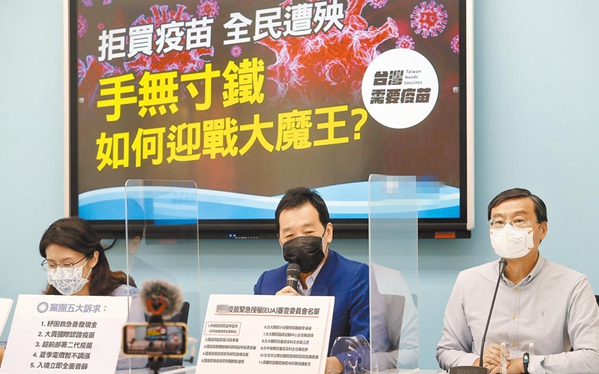 中國(guó)國(guó)民黨黨團(tuán)28日召開(kāi)“拒買(mǎi)疫苗,全民遭殃”記者會(huì)。(圖片來(lái)源:臺(tái)灣“中時(shí)新聞網(wǎng)”)