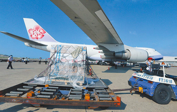 臺灣自購的9.96萬劑莫德納疫苗8日抵臺。(圖片來源:臺灣“中時新聞網”)