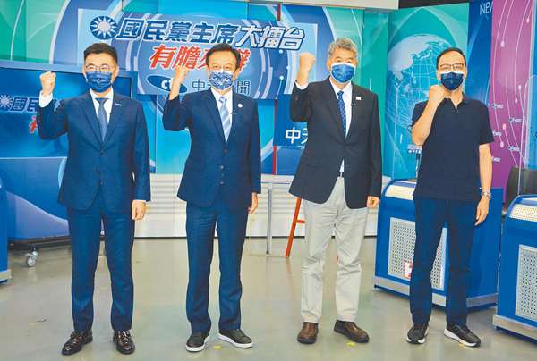 中國(guó)國(guó)民黨主席選舉將在25日舉行投票,江啟臣(左起)、卓伯源、張亞中、朱立倫4位候選人參加網(wǎng)絡(luò)直播辯論會(huì)。(圖片來源:臺(tái)灣《中國(guó)時(shí)報(bào)》)
