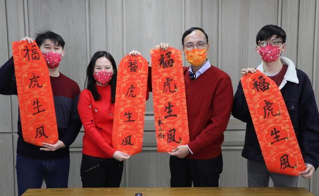 中國臺灣網2月1日訊 據臺灣“中時新聞網”報道,為迎接農歷虎年到來,中國國民黨主席朱立倫與三位青年朋友一同揮毫開筆,寫下“福虎生風”春聯,向大家拜年。除祝福新的一年,各行各業欣欣向榮、臺灣鄉親虎年如意,他也期望全體臺灣民眾同心協力,盡快脫離病毒肆虐,拋開疫情陰霾,成為飛奔躍升的一年。