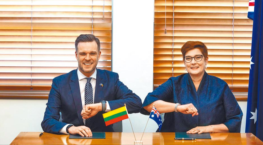 立陶宛外長(左)與澳大利亞外長(右)。(圖片來自臺媒)