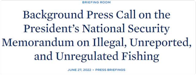 中國臺灣網6月28日訊 綜合媒體報道,美國總統拜登27日簽署了美國首份關于“非法、不報告和無管制(IUU)捕魚活動”的國家安全備忘錄,并宣布,將與越南、臺灣地區等地加強合作,出臺新規以打擊非法捕撈活動,并宣稱此舉將促進“對海洋資源的可持續開發”。雖然白宮未在該政策明文中提到中國大陸,但無論是美聯社等外媒還是臺媒都一致認為,其內容毫無疑問是在針對中國大陸。