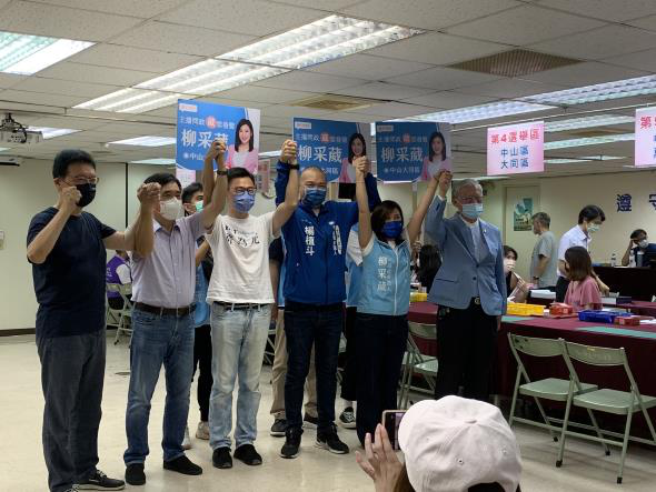 趙少康(左一)、郝龍斌(左二)等今天陪同中國國民黨議員參選人前往臺北市選委會登記。(圖片來源:臺灣《聯(lián)合報》)