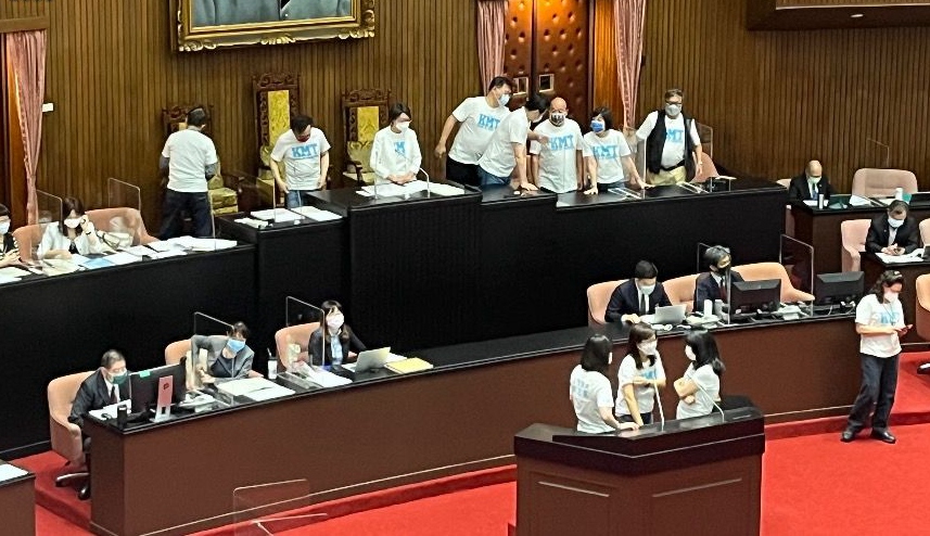 臺(tái)立法機(jī)構(gòu)一早9點(diǎn)敲鈴后,先由中國(guó)國(guó)民黨民代陳以信、游毓蘭、李貴敏、洪孟楷發(fā)言,4人發(fā)言完畢后,藍(lán)營(yíng)民代在9點(diǎn)36分占領(lǐng)議場(chǎng),并在地板鋪上“防疫失能!道歉負(fù)責(zé)!”的布條。
