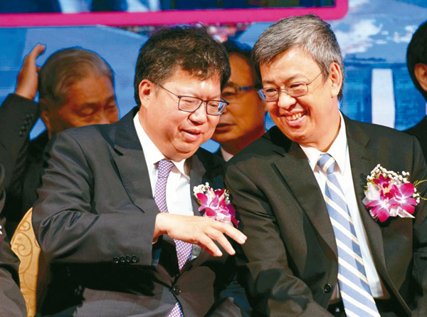 陳建仁(右)接任臺(tái)行政主管部門負(fù)責(zé)人,前桃園市長鄭文燦任其副手。(圖片來源:臺(tái)灣《聯(lián)合報(bào)》)