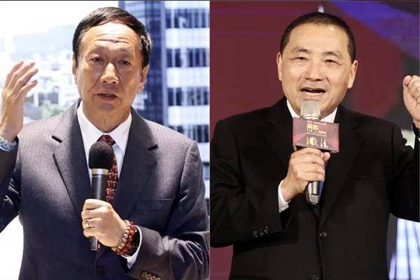 新北市長侯友宜(右)與鴻海集團(tuán)創(chuàng)辦人郭臺銘(左)。(圖片來源:臺灣《聯(lián)合報(bào)》)