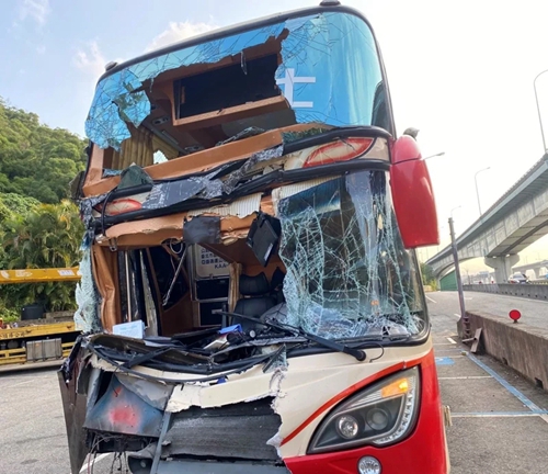 島內(nèi)一輛客運(yùn)車追撞前方大貨車,所幸僅3人輕傷。(圖片來源:臺(tái)灣《聯(lián)合報(bào)》)