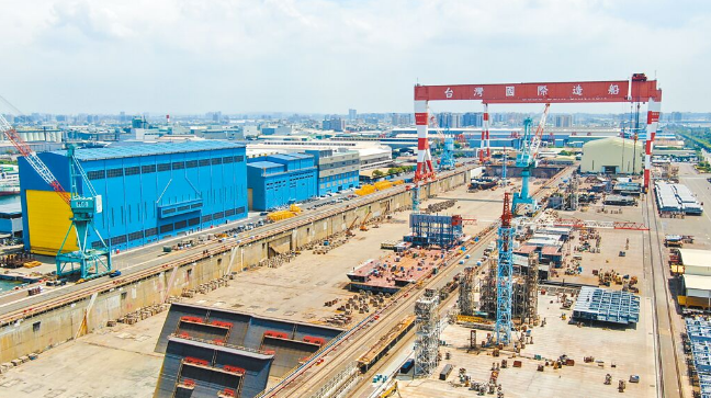 圖為臺船公司生產(chǎn)“潛艦自造”原型艦基地。(圖片來源:臺灣“中央社”)