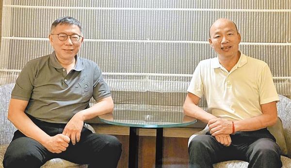 高雄前市長(zhǎng)韓國(guó)瑜9日在社交平臺(tái)貼出與民眾黨2024參選人柯文哲合照。(圖片取自臺(tái)媒)
