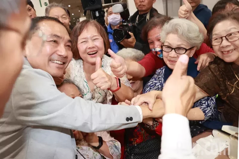 侯友宜(左)出席臺(tái)灣觀光產(chǎn)業(yè)聯(lián)誼餐會(huì),受到與會(huì)民眾熱情歡迎,爭相上前握手合影。(圖片來源:臺(tái)灣《聯(lián)合報(bào)》)