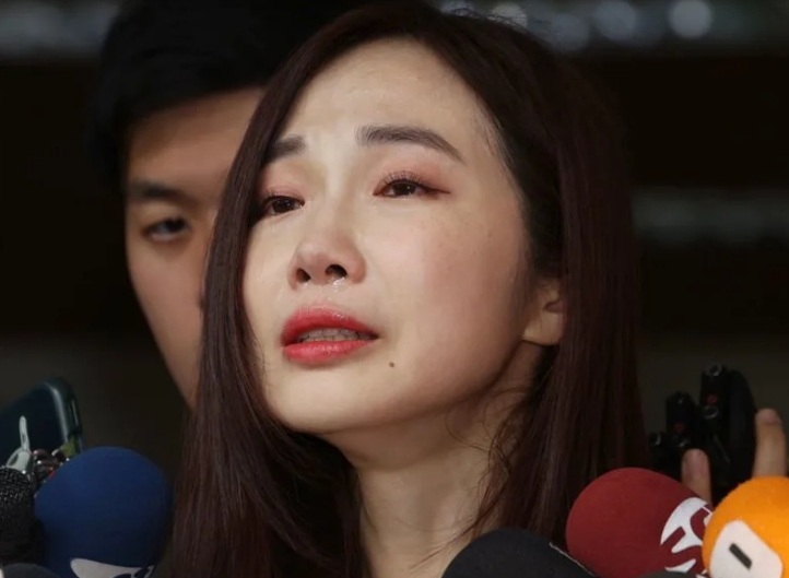 民眾黨美女發言人楊寶楨淚灑受訪現場。(圖片來自臺媒)