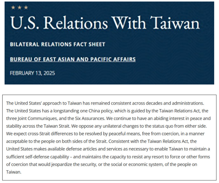 事實上,這已經不是美國國務院網站首次修改相關涉臺表述,早在2022年5月,拜登執政時期,美國國務院就曾刪除關于“承認臺灣是中國一部分”“美國不支持臺灣獨立”等表述,但在不到一個月后,美國國務院又重新加上了“不支持臺獨”“反對任何一方改變現狀”以及期盼“和平解決兩岸分歧”等內容。