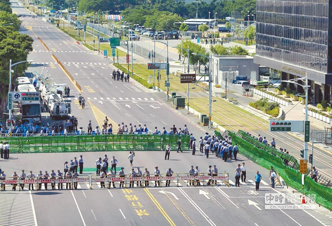 比如蔡英文南下高雄參訪時,為免反“年改”群眾靠近抗爭,市警局竟然封閉了長達1.2公里的路管制交通,并架設鋪上綠網的拒馬及圍欄予以阻隔。