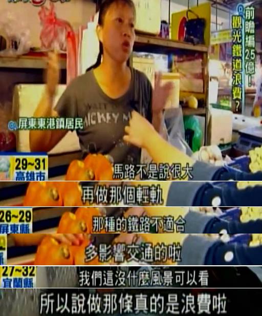 甚至連屏東的地方政府人員都表示:當地老人會因為“前瞻計劃”中的這條鐵路而增加發生車禍的幾率。