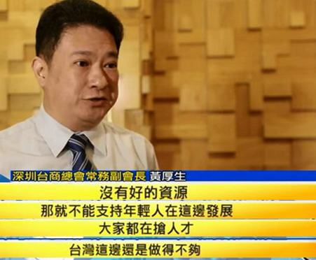 深圳臺商總會常務副會長黃厚生更直言,臺灣沒有好的資源自然不能支持年輕人,尤其是臺灣人才的發展。