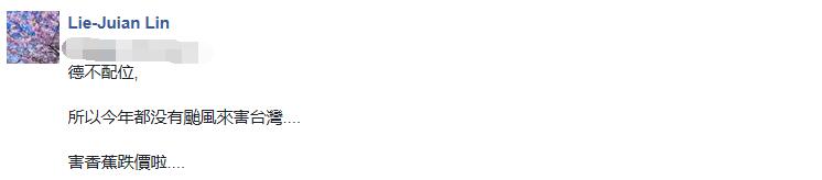 有網友劍指蔡英文大位,直指是蔡當局“德不配位”,蕉農才遭遇了“香蕉危機”,同時“躺槍”的還有民進黨的“錢沾”和“新南向”: