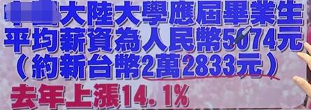 當(dāng)蔡當(dāng)局為漲薪至22K而沾沾自喜,覺得已是“大發(fā)慈悲”時,大陸一般大學(xué)的應(yīng)屆畢業(yè)生起薪就是近2.3萬了!