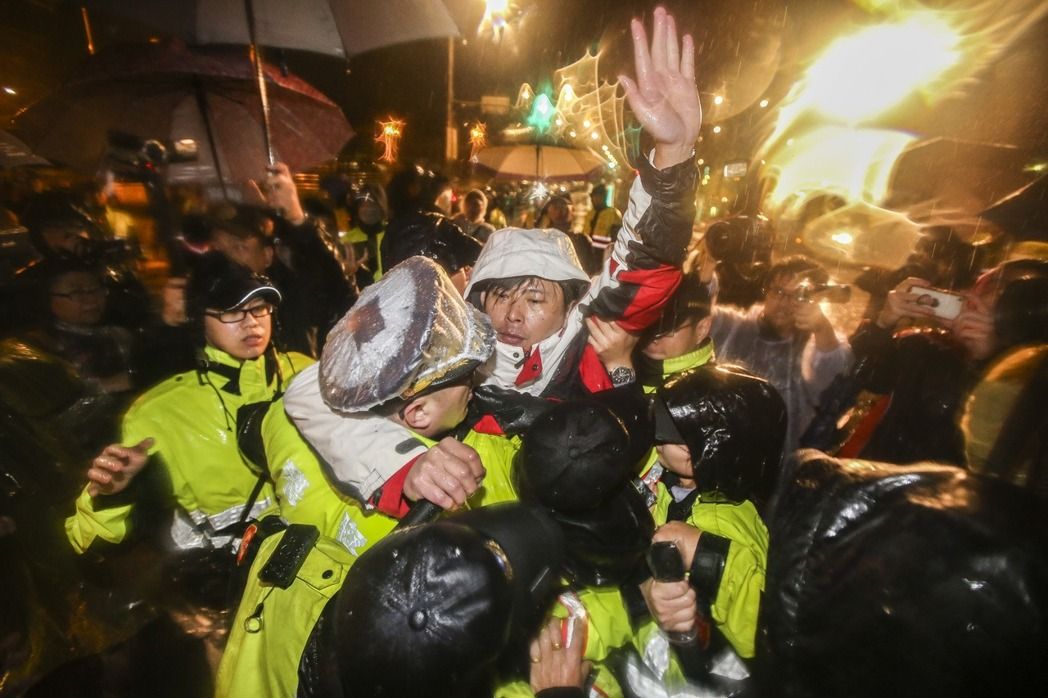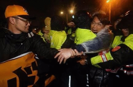 直到8日凌晨4點時,臺北市警察局終于展開了“驅離”動作!據臺媒報道,警方到場后,大聲表示當天是上班日,“基于市民用路需要,要維護交通秩序”,加上“立委”禁食需人道考慮,因此實施“保護帶離動作”,并動用了兩輛大型警備車與兩百多名警力排成人墻,以包圍、分隔的方式,將現場靜坐抗議的“立委”與民眾分批送上警車,之后合計10男6女被警方帶走。