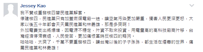 對(duì)此,有網(wǎng)友表示,民進(jìn)黨所謂的“綠色執(zhí)政,質(zhì)量保證”就是把百姓當(dāng)成白癡,等到海水褪去,才知道誰沒穿褲子;還有人認(rèn)為,就不應(yīng)該重啟核四為民進(jìn)黨解套,讓他們繼續(xù)作,使民眾看清“綠營(yíng)”的嘴臉,“讓臺(tái)灣以后的子子孫孫都痛罵民進(jìn)黨。”