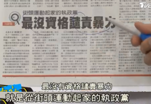 臺灣媒體評論也表示,對于暴力全世界都可以批評,就是民進黨沒這個資格,因為你就是靠這玩意上臺的。