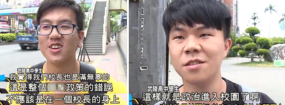 學生也是紛紛為自家校長喊冤,“這根本是政策的錯誤”、“這樣不就是政治介入校園了”。