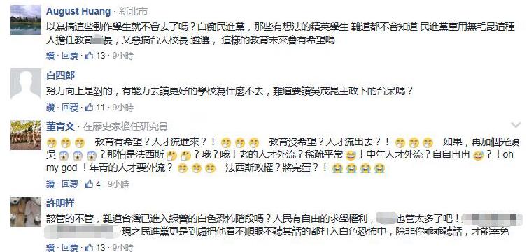 網友們聞此不僅直言“不會以為搞這些動作學生就不去了吧”,更嘆:臺灣是沒有言論自由了嗎?