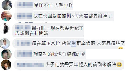 沒(méi)想到許多網(wǎng)友看到照片都不意外,紛紛淡定表示“見(jiàn)怪不怪,大驚小怪”“想當(dāng)初的我也有純純的愛(ài)”“少子化就需要年經(jīng)人的沖勁來(lái)解決”。