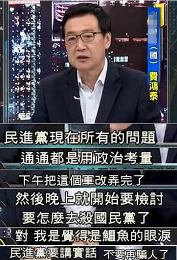 國民黨民代費鴻泰則直言,民進黨現在所有的問題“通通都是用政治考量”。
