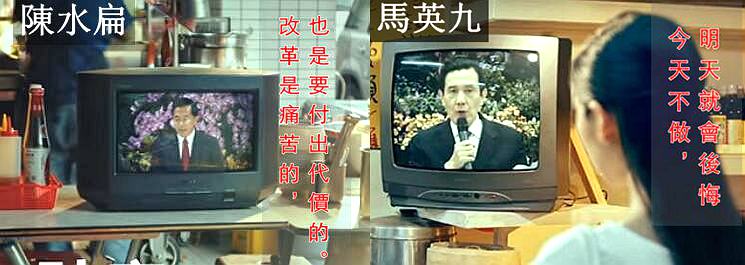 民進(jìn)黨日前發(fā)表了個(gè)“改革挺臺灣,年金改革篇CF”的廣告,在島內(nèi)電視臺播出得那叫個(gè)密集,馬英九、陳水扁和蔡英文更“同框”入鏡,只不過可惜的是,前兩個(gè)人的出現(xiàn)都是為了襯托蔡英文的“光輝形象”……