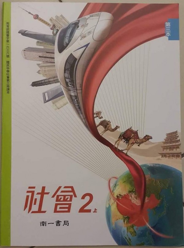 事情是這樣?jì)饍旱危_(tái)灣南一書(shū)局的初二社會(huì)課本封面,使用了大陸高鐵、上海東方明珠塔等圖像,竟然被臺(tái)北教育大學(xué)名譽(yù)教授李筱峰說(shuō)像大陸的“政治宣傳海報(bào)”,并認(rèn)為“封面不須如此吹捧中國(guó)”。