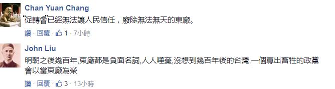 于是就有人直言“促轉會”就是“黑機關”、“民進黨專屬門斗組織之一”,更說這是蔡英文“為自己設立的體制外東廠”、“無法無天”。