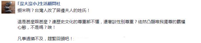 有人諷刺“真是管得寬”、“問過當事人的感受嘛”、“日本人都從夫姓,快叫日本改啊”;