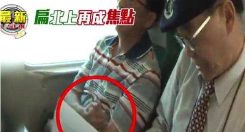 早前陳水扁乘高鐵北上,看到記者的鏡頭馬上伸出手來對著鏡頭抖。