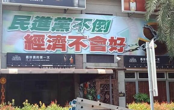 高雄某知名餐廳曾在門口掛上“民進黨不倒 經濟不會好”海報。
