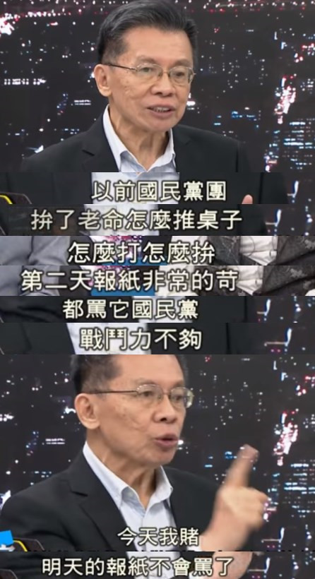沈富雄評(píng)論稱,以前國民黨杯葛,不管多激烈都要被罵,戰(zhàn)斗力不夠;不過這一次,國民黨“醒過來了”。